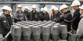 Студенты посетили цех механической обработки электродной продукции и участок торцевания цеха обжига, где увидели некоторые этапы производства графитированных электродов.